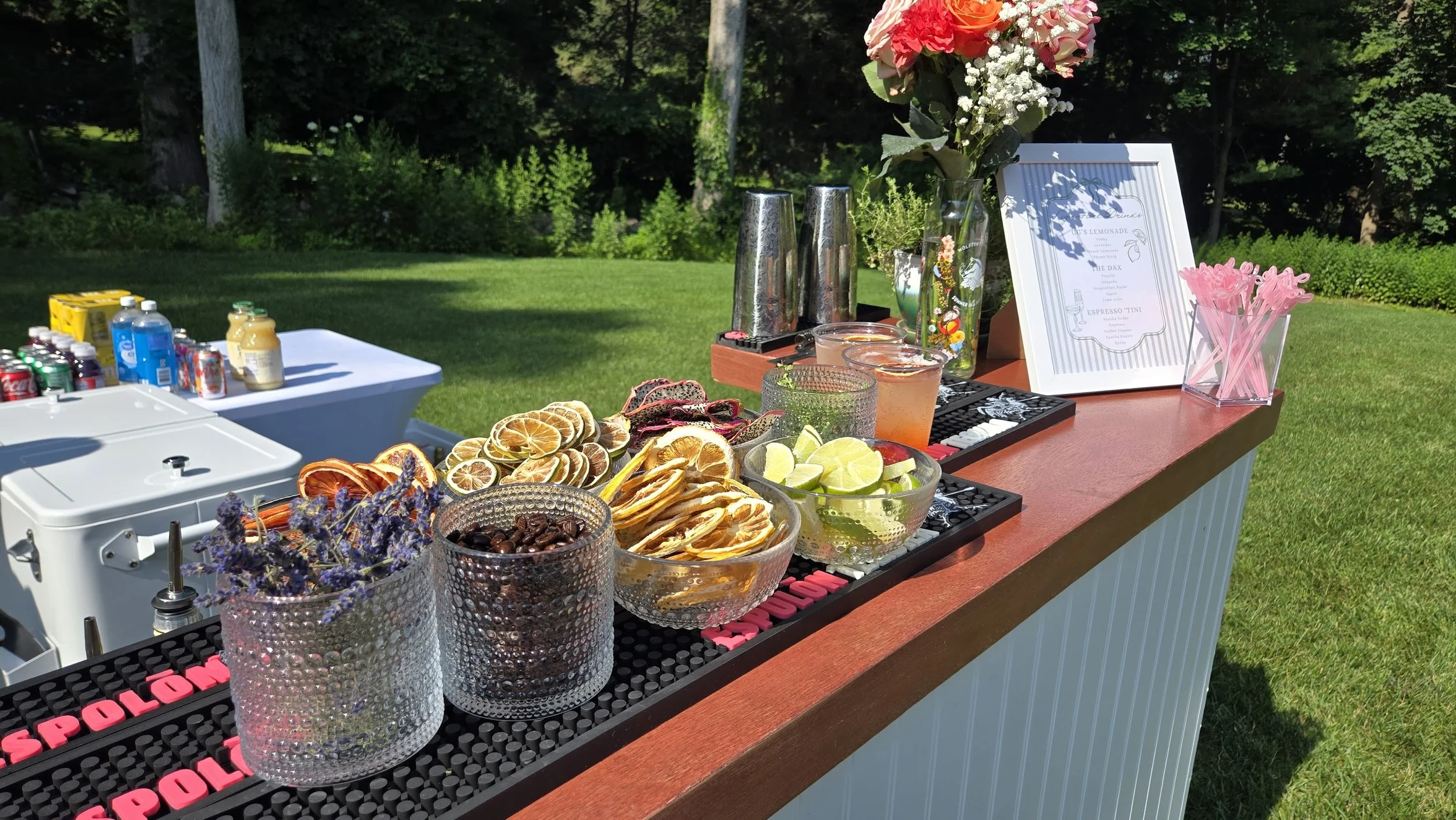 Each package includes everything you need minus the alcohol: delivery & set-up, TIPS certified bartenders, hydration station, cups, ice, garnishes, mixers, clean-up, removal and event insurance.